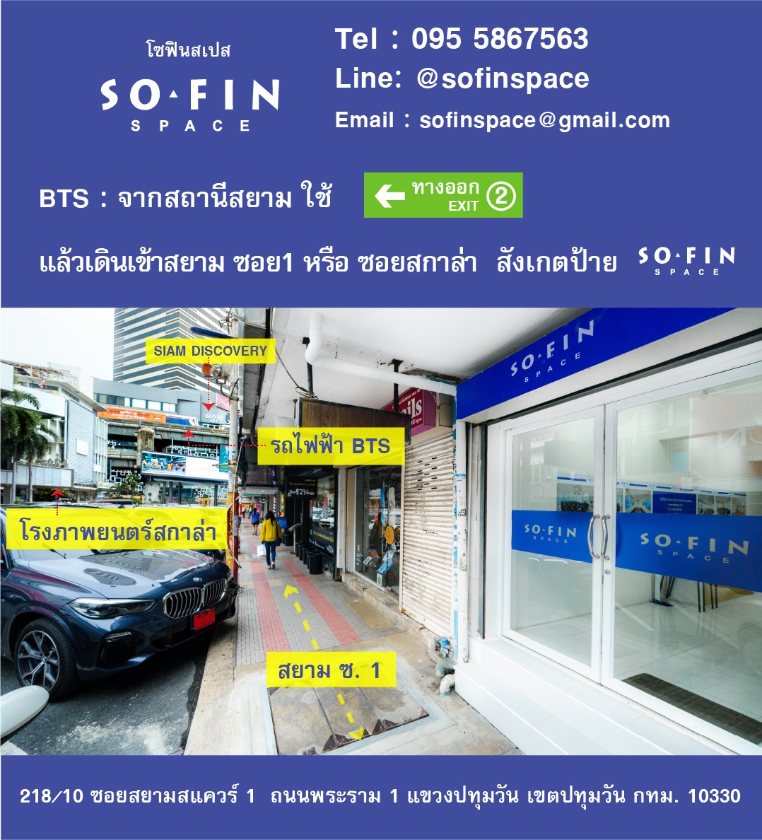 Sofinspace is well equipted and locates at the center of Bangkok. You can commute easily from BTS station to Siam Squre Soi 1